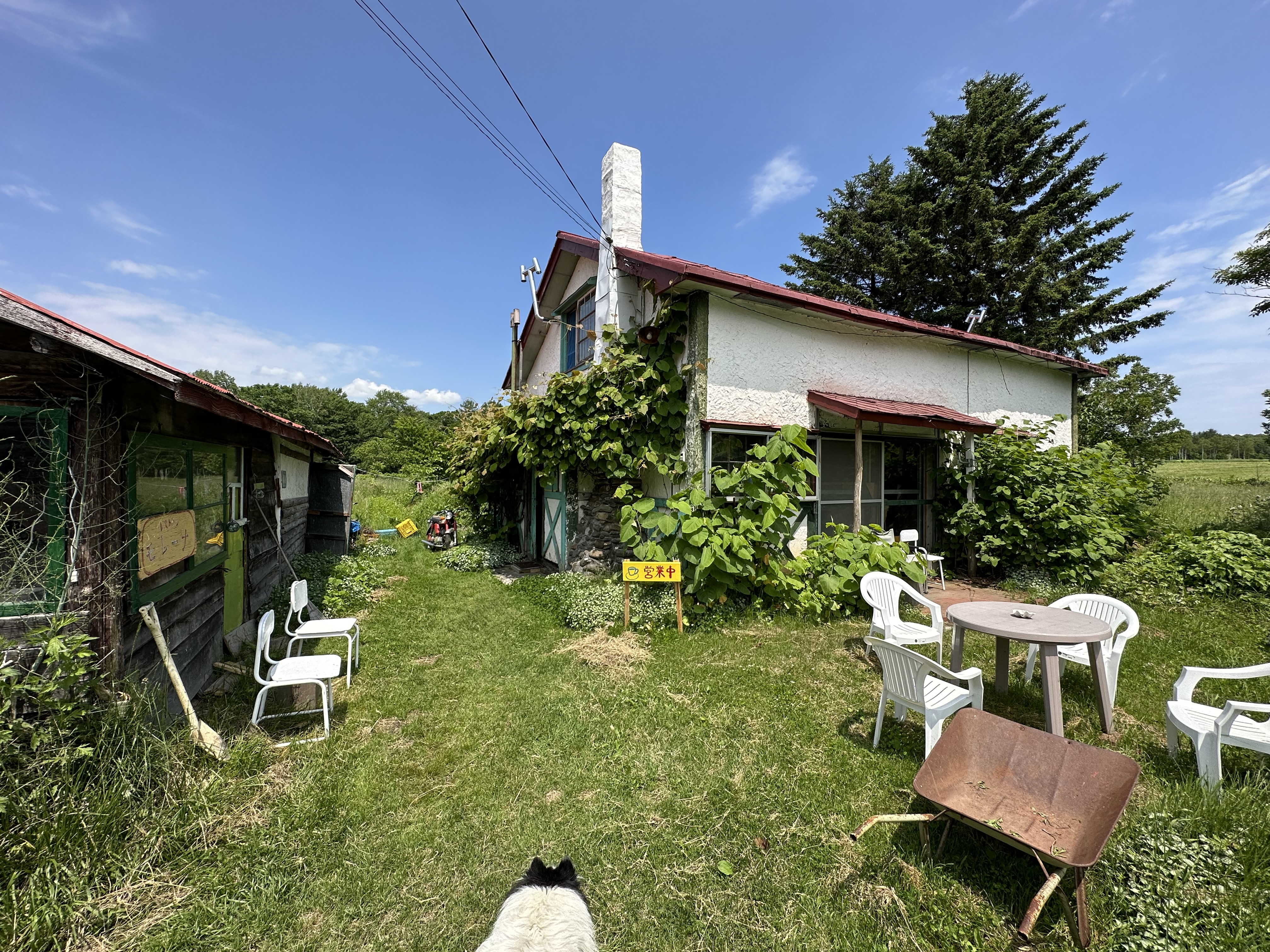 어떻게 알았는지 왠 개 한마리가 우리 가족을 맞이해줍니다
