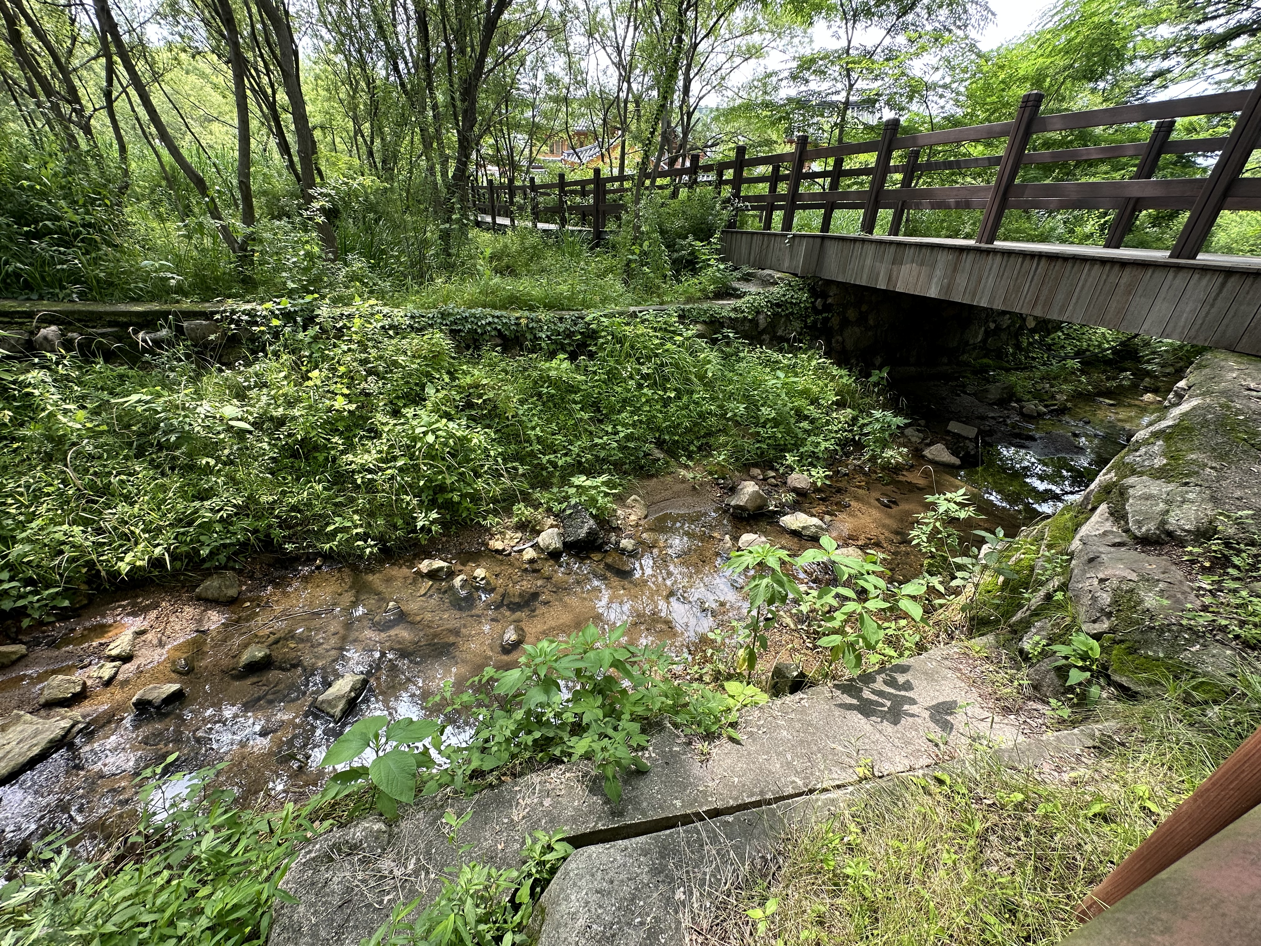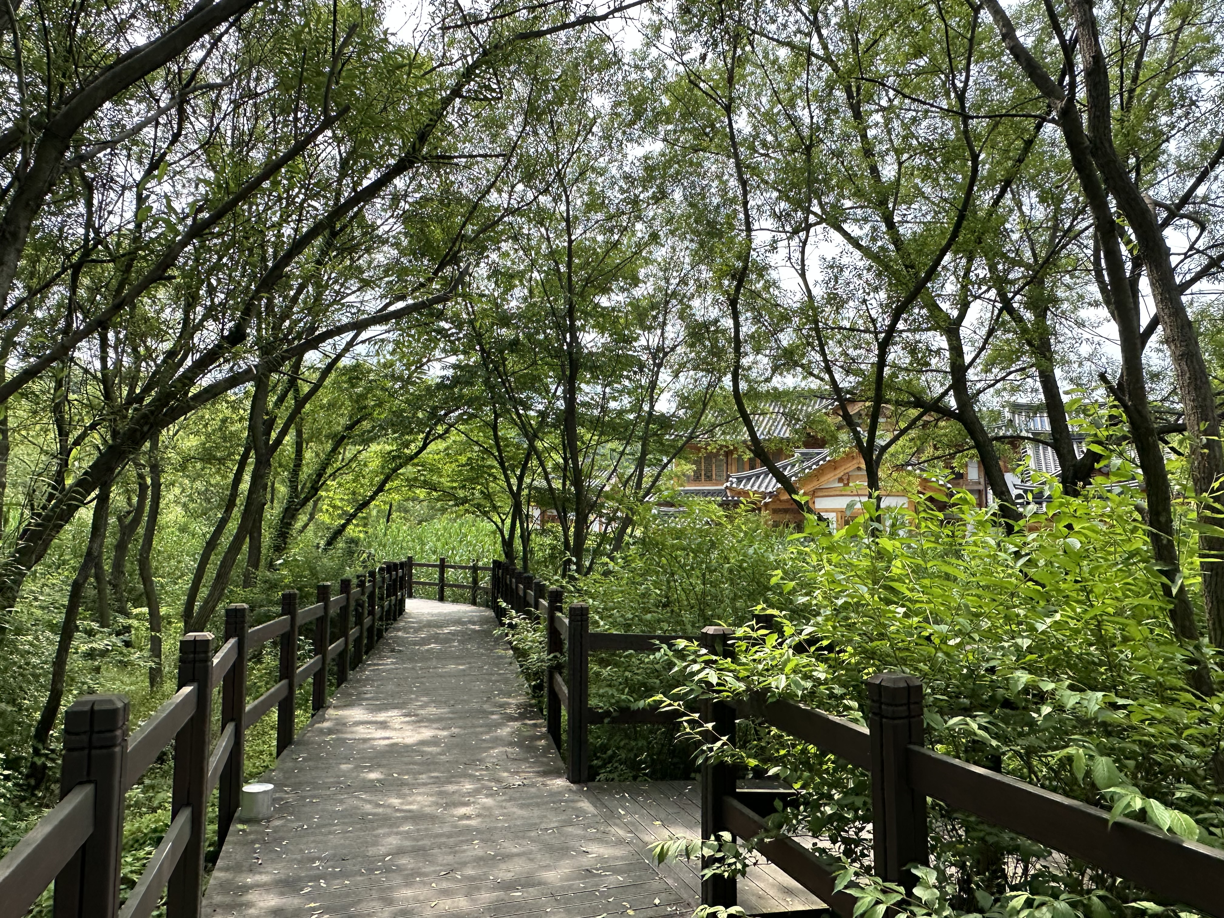 한옥 마을 습지지대에 나무로 공중 통로를 만들어 놨는데